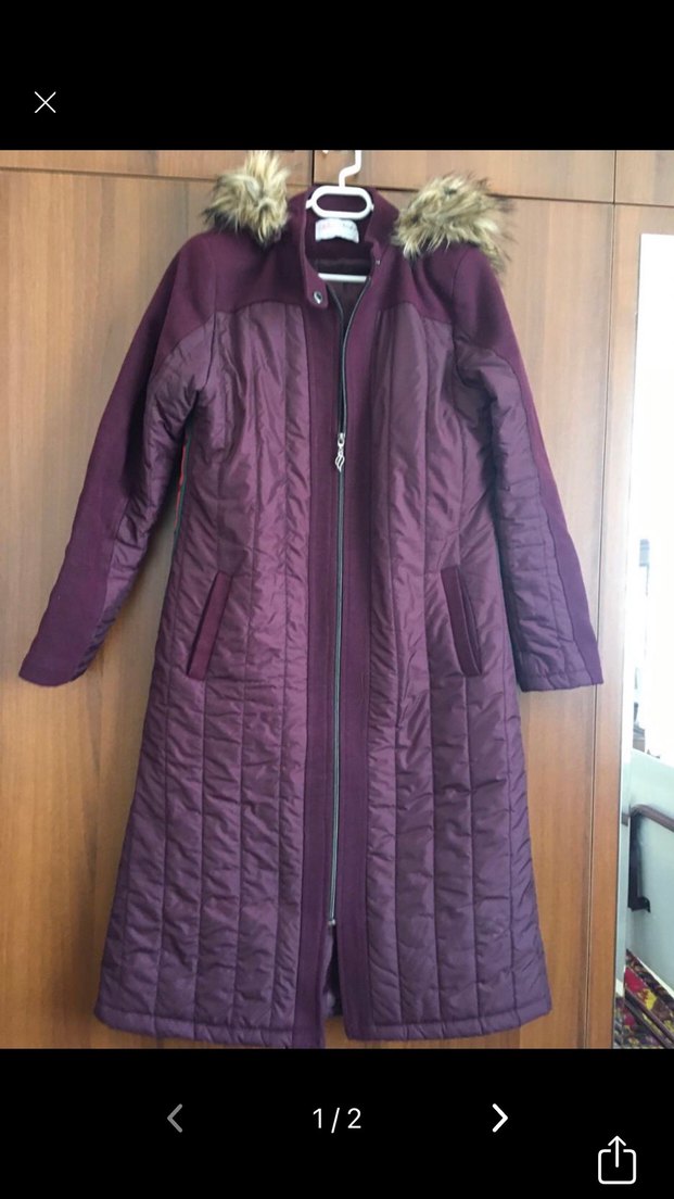 Bordo renkli uzun kışlık mont, fermuarlı ve yakasında suni kürk detaylıdır. Uzun kollu, rahat kesim, yumuşak ve sıcak kumaştan üretilmiştir. Günlük kullanım için uygundur. ❄️