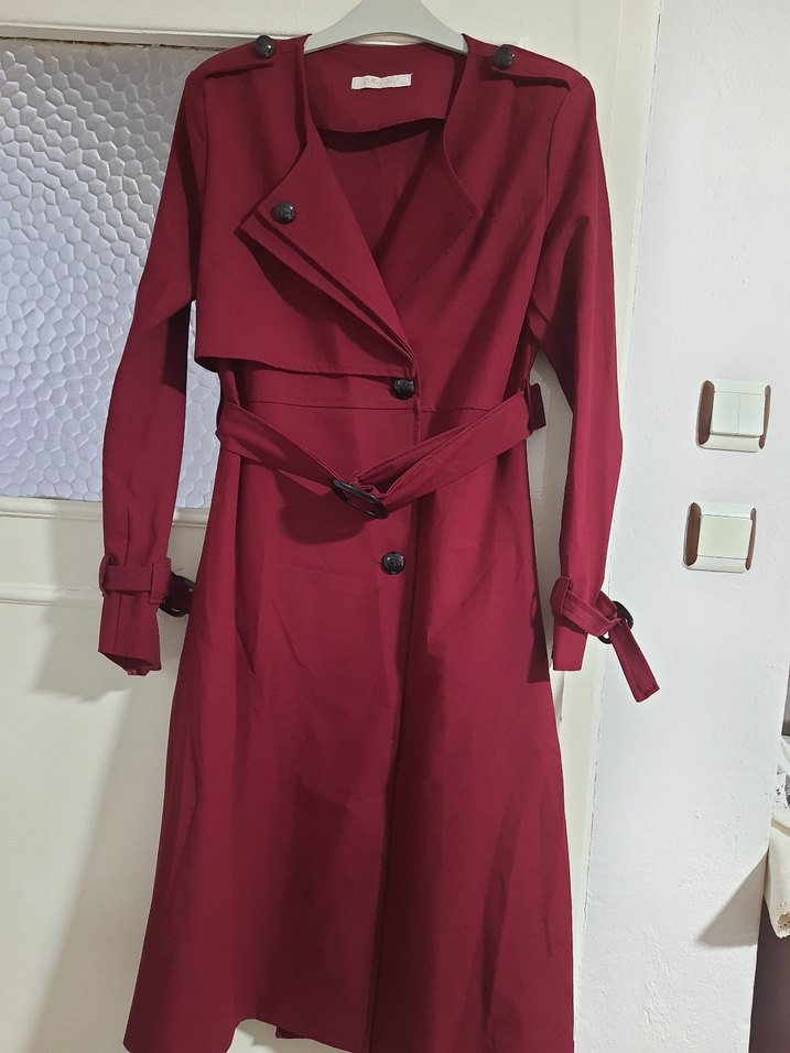 Bordo renkli uzun trençkot, klasik yaka ve düğmeli kapama ile tasarlandı. Kemerli ve regular fit kesimi, uzun kollu ve desensiz yapısıyla günlük kullanıma uygun şık bir parça.