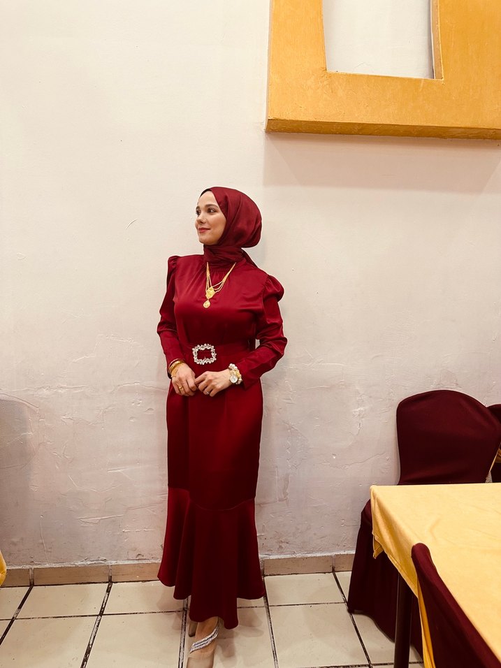 Bordo Uzun Kol Drapeli Kadın Elbise