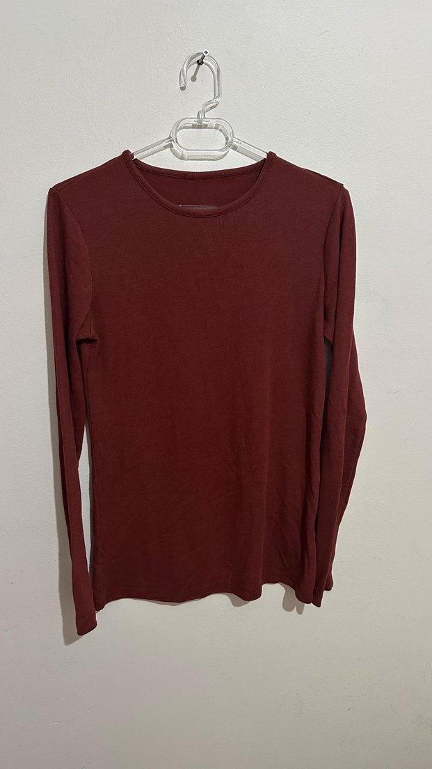Kadınlar için bordo renk, uzun kollu ve yuvarlak yaka basic kazak. Gevşek kesim ve rahat kumaştan, günlük kullanıma uygun minimal tarzda. Defosu son görseldeki gibi altta dikkatli bakılmadığında belli olmuyor.