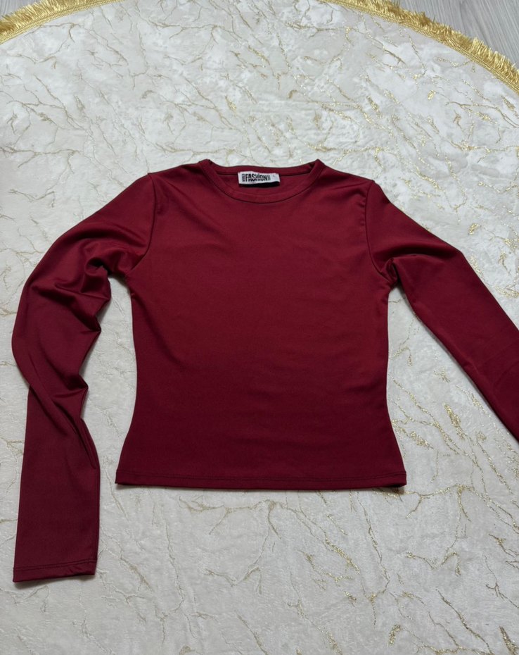 Bu bordo renkli, uzun kollu ve dar kesim kadın tişörtü, düz ve rahat sentetik kumaştan üretilmiştir. Günlük kullanıma uygun sade ve şık bir sokak stili sunar.