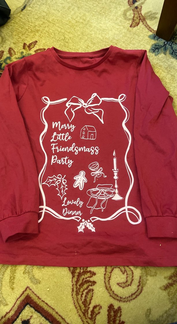 Bordo renkli, uzun kollu, bol kesim ve bisiklet yaka kız tişörtü. Üzerinde şık baskılı desen vardır. Yumuşak ve sıcak kumaştan üretilmiştir.