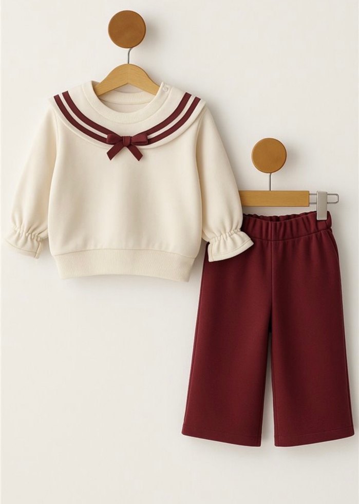 6-9 9-12 12-18 18-24 aylık Krem rengi, bordo detaylı uzun kollu üst ve bordo pantolon içeren bebek kız takımı. Yumuşak ve desensiz tasarıma sahiptir.