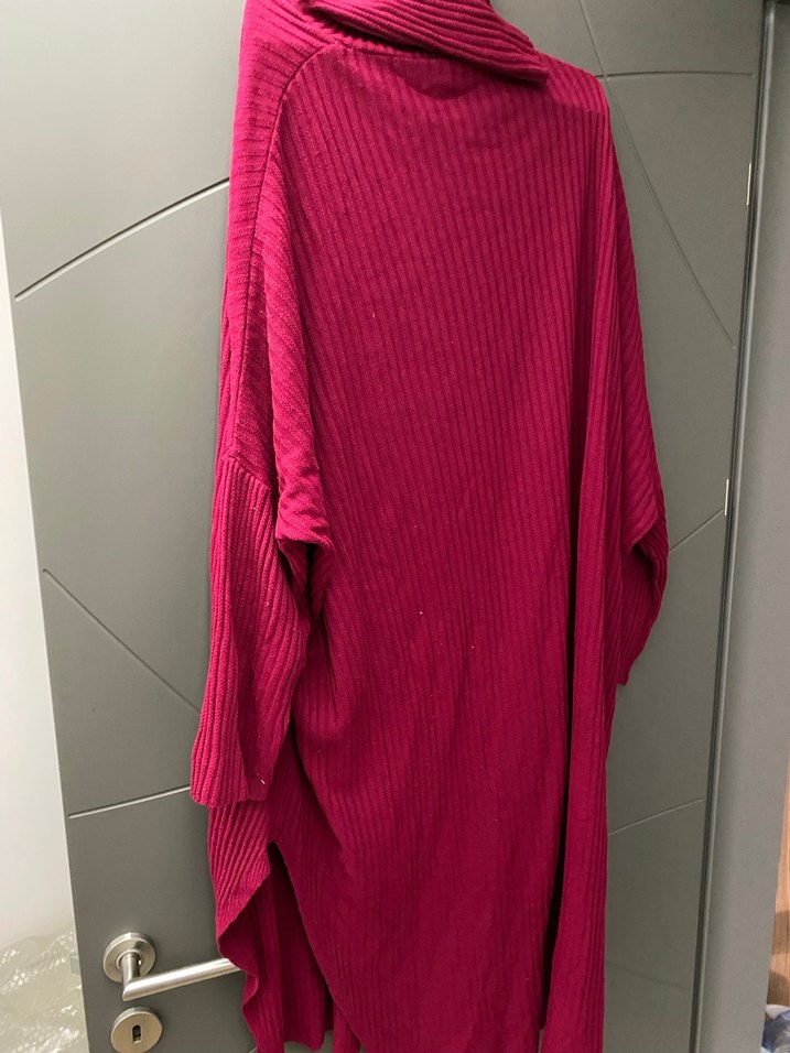 Bordo renkte, boğazlı ve uzun kollu bu kazak salaş ve uzun kesimiyle rahat bir kullanım sunar. Düz renk ve yumuşak sentetik kumaştan üretilmiştir.