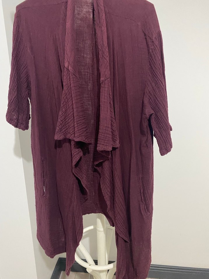 Bordo renkli, uzun kollu ve bol kesimli Desensiz yapısı ve yumuşak dokusuyla rahat, bohem bir tarz sunar.