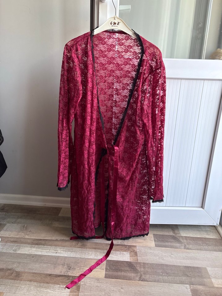 Bordo renkte, uzun kollu ve yılan desenli, bohem tarzda, bol kesim uzun kadın sabahlığı. Rahat ve şık bir görünüm sunar.