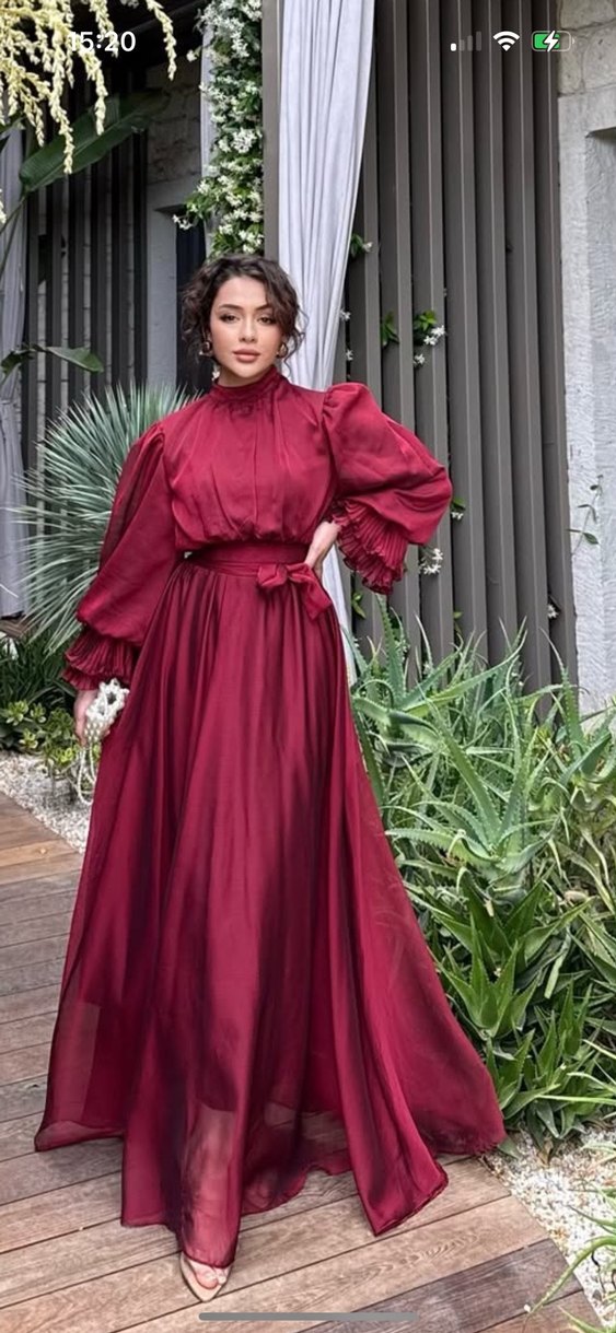 Bordo Uzun Kollu Bohem Elbise