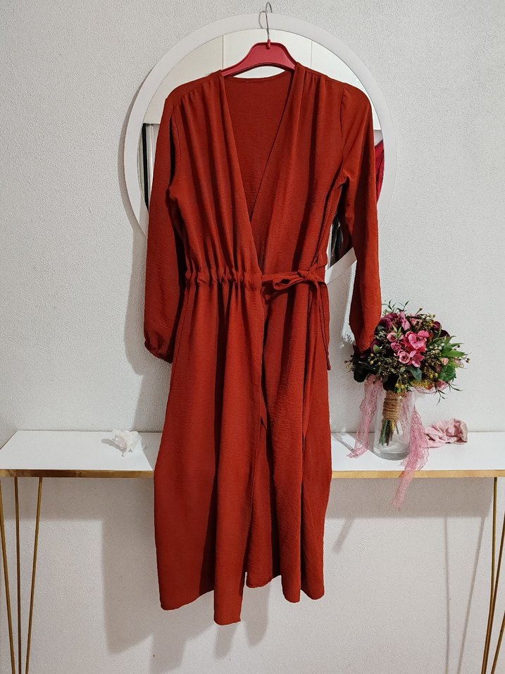 Bordo renkli, uzun kollu, bol kesim bohem tarzda kadın hırka Yumuşak kumaştan üretilmiş, belden bağlamalı ve uzun boylu, rahat kullanım sağlar.