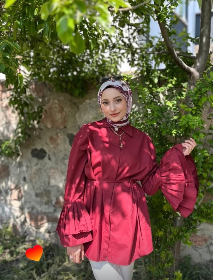 Bordo Uzun Kollu Bohem Uzun Tunik