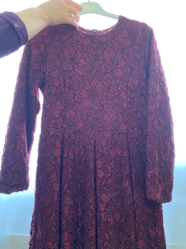 Bordo Uzun Kollu Dantel Abiye Elbise