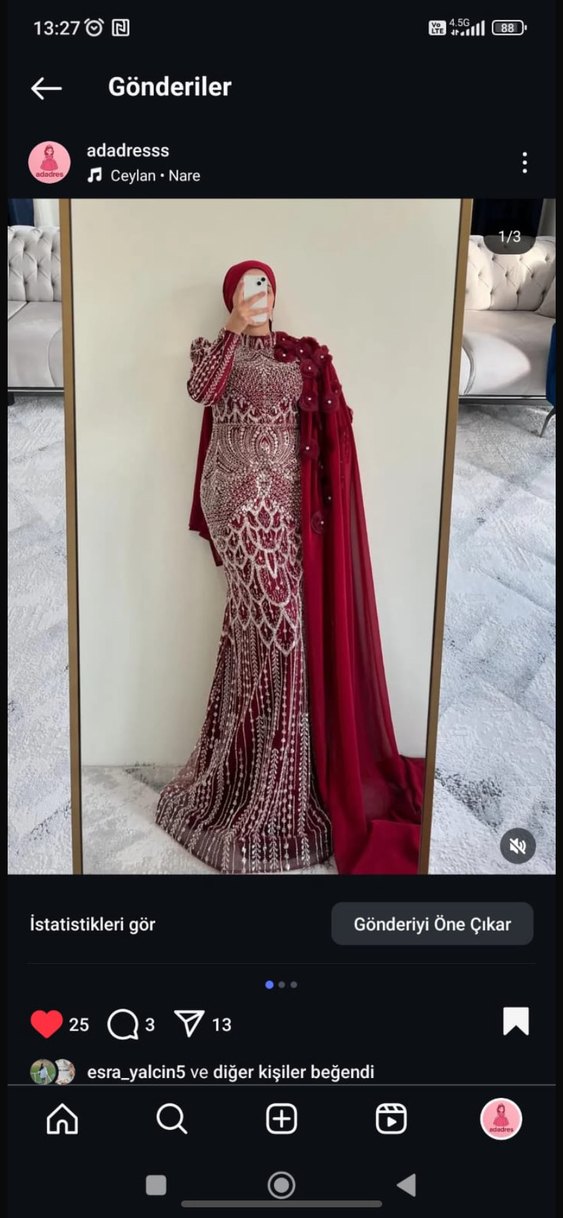 Bordo renkli, yüksek yakalı ve uzun kollu bu dar kesim abiye elbise, drapeli ve işlemeli desenlere sahip parlak bir görünüme sahiptir.