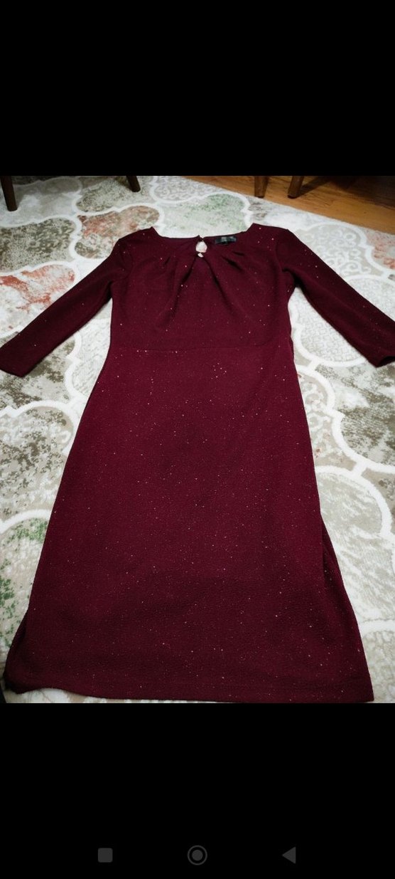 Bordo renkli, uzun kollu simli kumaşa sahip yandan fermuarlı