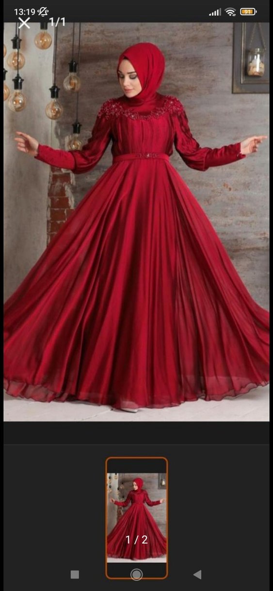 Bordo renkli, uzun kollu ve yüksek yakalı uzun abiye elbise. Drapeli kumaşı ile şık ve rahat bir görünüm sunar, düğünler için uygundur. Çok severek kullandım 2 defa giydim.