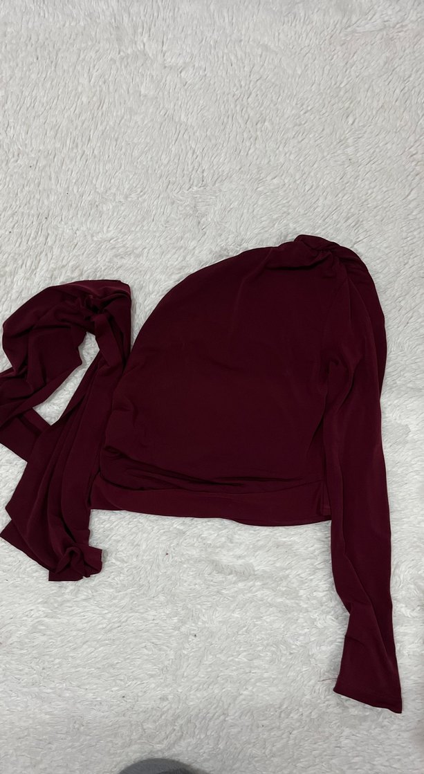 Bordo Uzun Kollu Drapeli Kadın Bluz