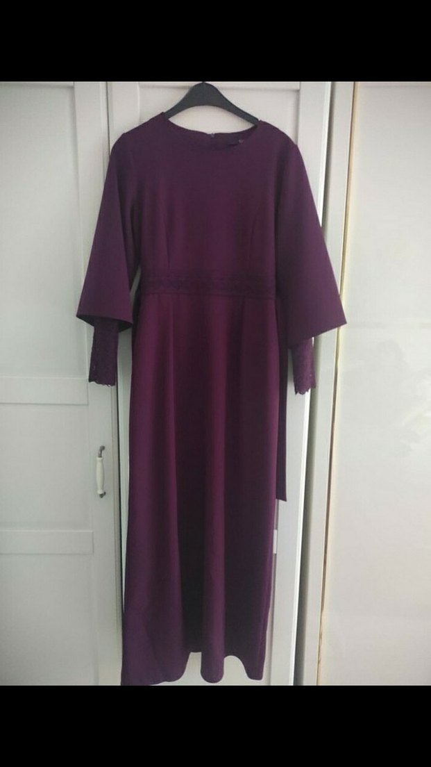 Bordo renkte, uzun kollu ve tek renk drapeli kadın elbisesi. Modern klasik tarzda, rahat kesimli ve sentetik kumaştan üretilmiştir.