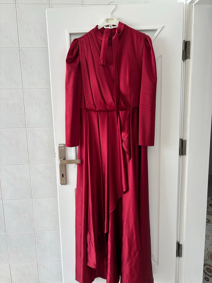 Bordo Uzun Kollu Drapeli Kadın Elbise Şalı da vardır
