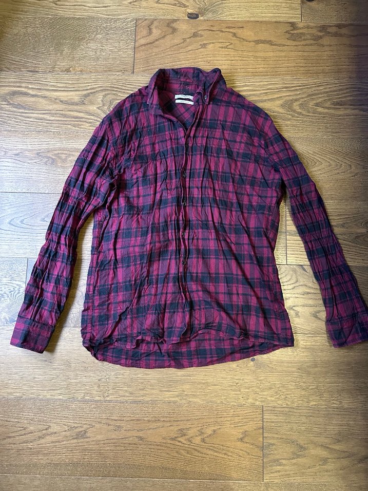 Mango Bordo renkli, uzun kollu, düğmeli ve yakalı erkek gömleği. Keten kumaştan, salaş kesim ve koyu tonlu batik desenlidir. Günlük rahat stil için uygundur.
