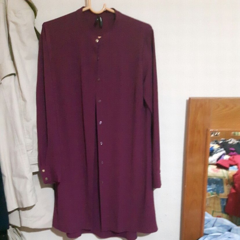 Bordo Uzun Kollu Düğmeli Kadın Tunik