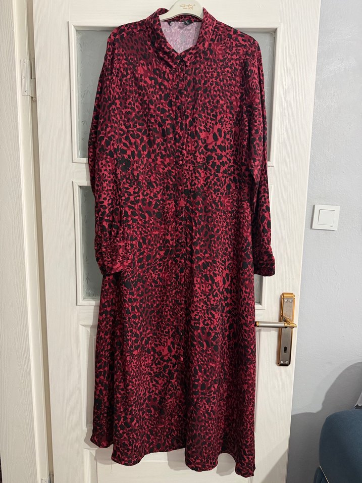 Bordo renkli, uzun kollu, yüksek yakalı ve düğmeli bu uzun elbise, salaş kesimi ve batik desenleriyle rahat bir sokak stili sunar. Hiç kullanmadım hediye geldi