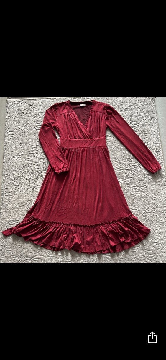 Bordo Uzun Kollu Fırfırlı Uzun Elbise s beden