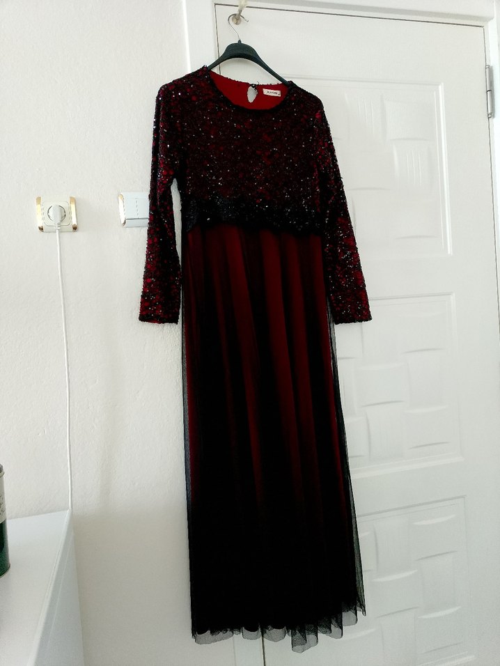 Bordo Uzun Kollu Gotik Abiye Elbise