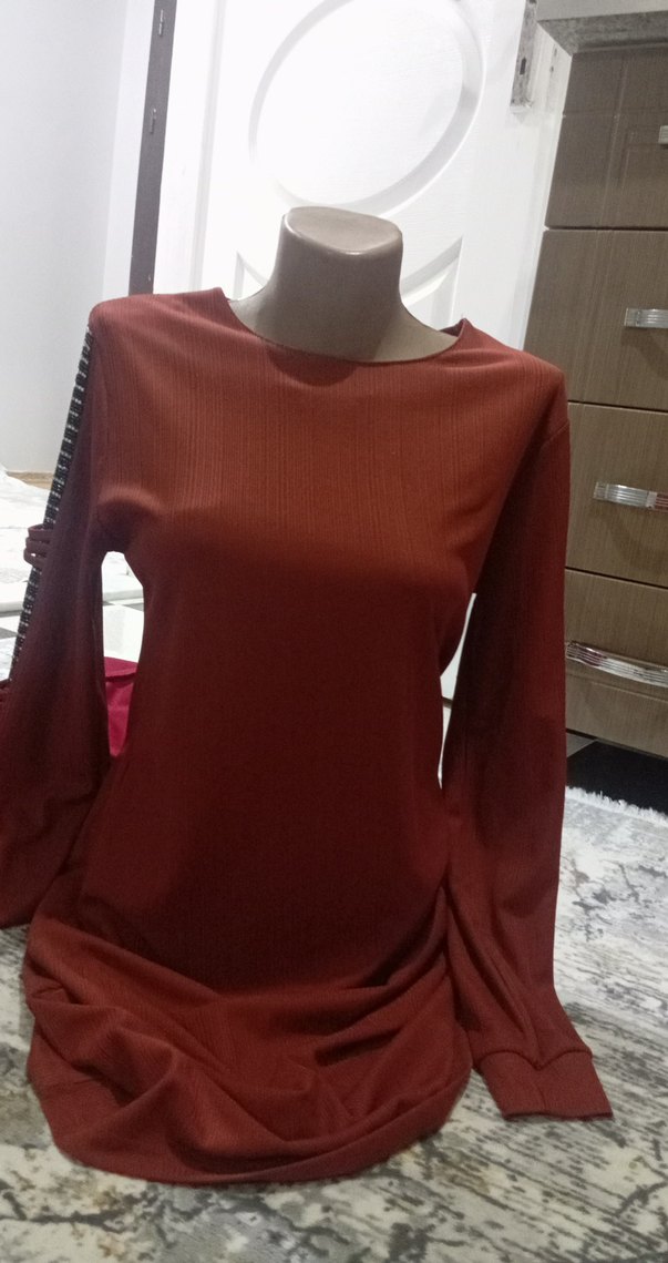 kiremit, uzun kollu ve bluz parlak sentetik kumaştan üretilmiştir. Rahat ve çağdaş tasarımıyla günlük kullanıma uygundur. siyahi da var yeni ve etiketli