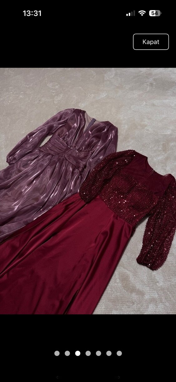 Bordo uzun kollu, tek renkli, modern klasik tarzda, drapeli ve klasik şıklıkta, düğünlere uygun dar kesim kadın abiye elbise. Bordo olan elbise satılıktır diğeri stıldı ve sıfırdır