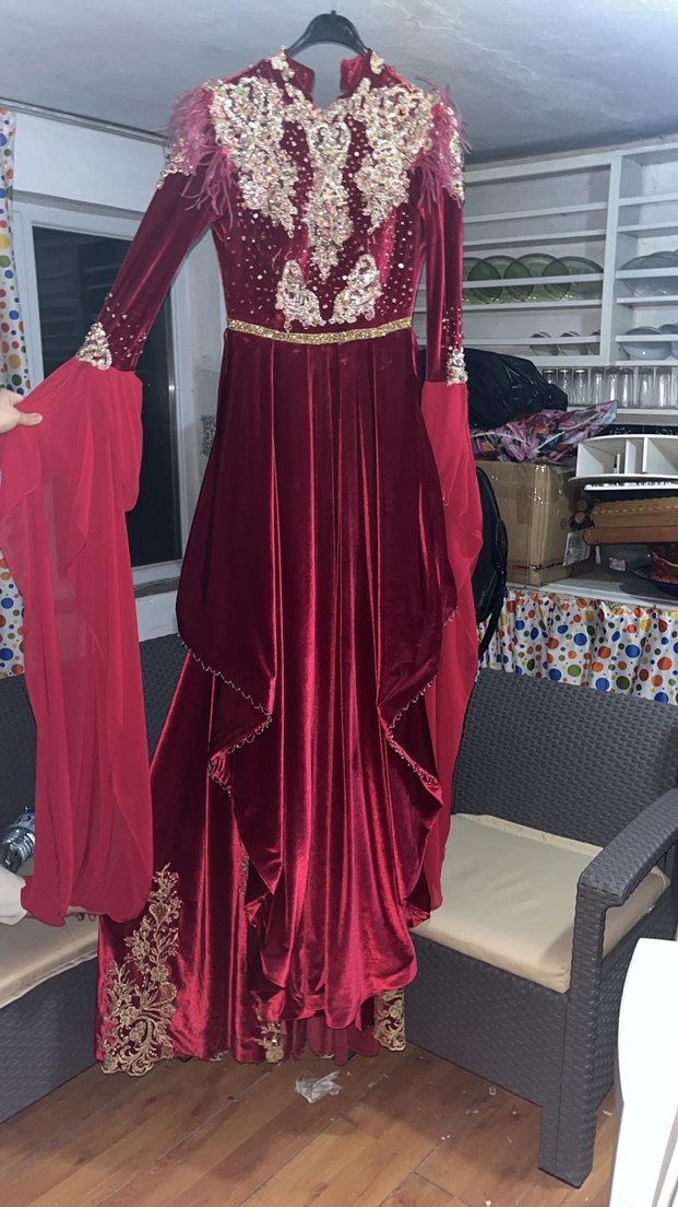 Bordo Uzun Kollu Kadın Bindallı Elbise