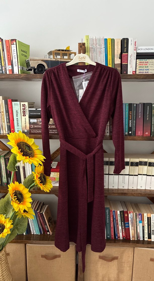 Bordo Uzun Kollu Kadın elbise