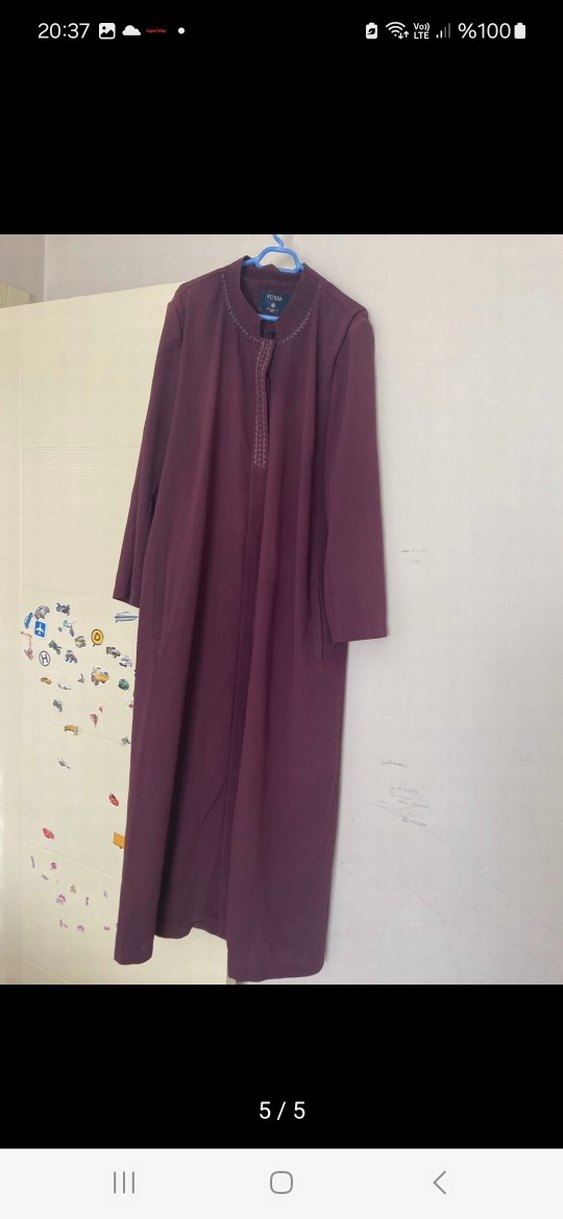 Bordo renkli, uzun kollu ve bol kesim kadın ferace. Minimalist ve klasik tarzda, desensiz tasarımıyla sade bir görünüm sunar.