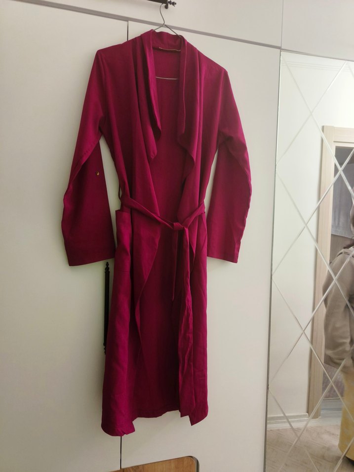 Bordo renkli, uzun kollu ve bol kesim kadın sabahlık. Minimalist normcore tarzında, desen içermeyen uzun boy model. Hiç giyilmedi hesabımdan diğer ürünlere bakabilirsiniz.