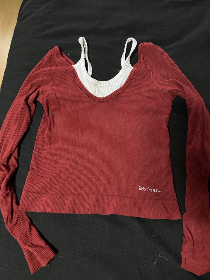 Bordo renkte, pamuk kumaştan, uzun kollu ve fitted kesim kadın tişörtü. Günlük kullanım için rahat ve şık bir sokak stili sunar.