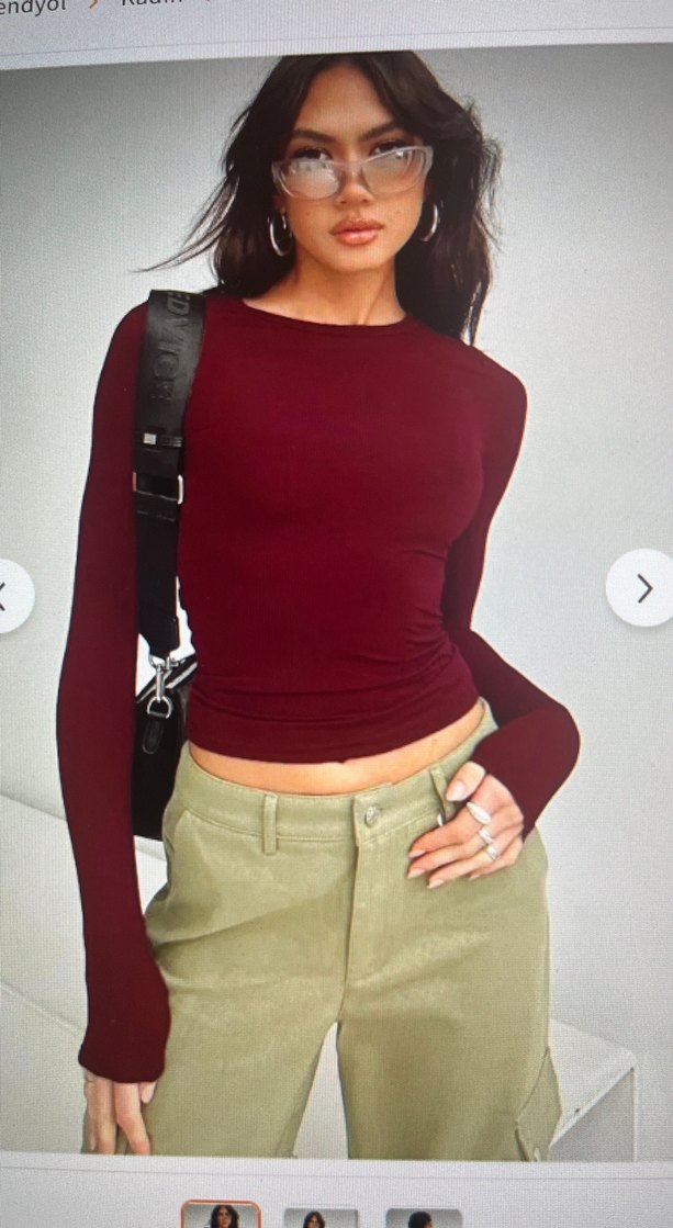 Bordo Uzun Kollu Kadın Tişört dar bluz