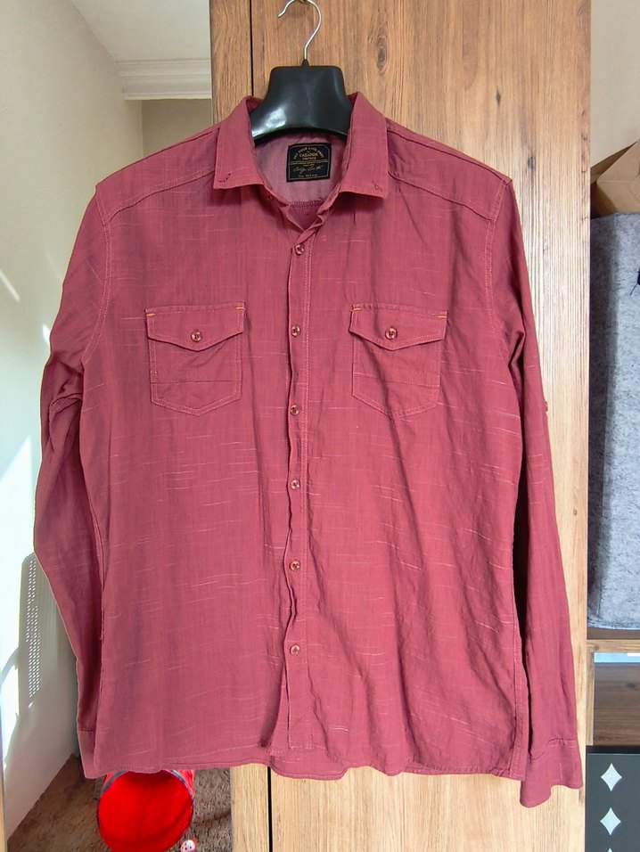 Cazador marka Bordo renkli, keten kumaştan üretilmiş, düğmeli, uzun kollu, bol kesim erkek gömleği. Notch yaka ve göğüs cepleri bulunur, günlük kullanıma uygundur.