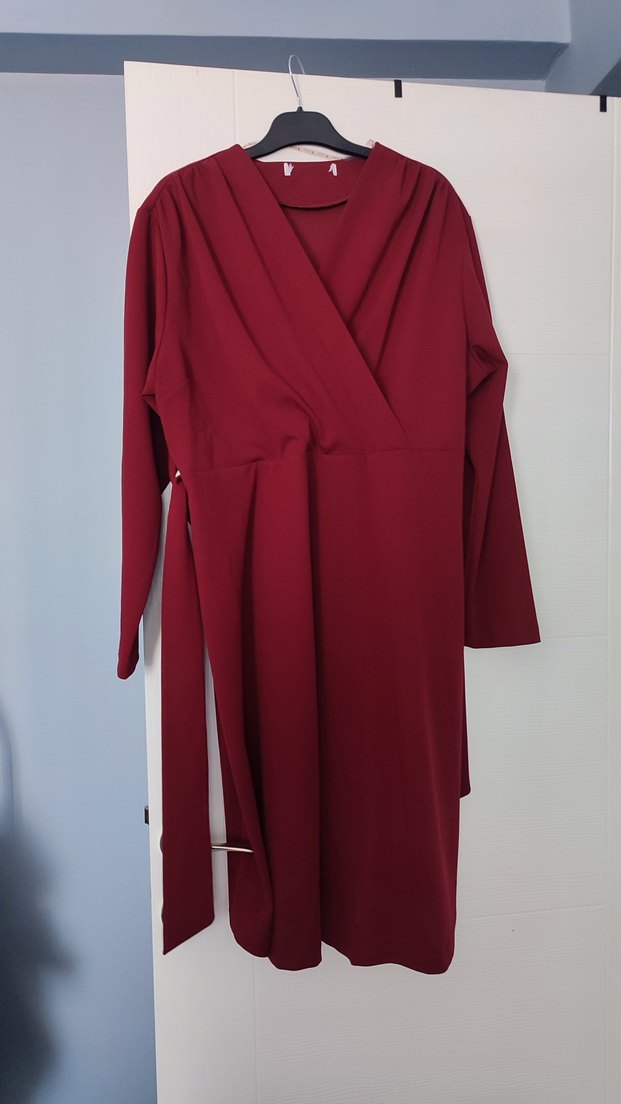 Bordo Uzun Kollu Kruvaze Yaka Elbise