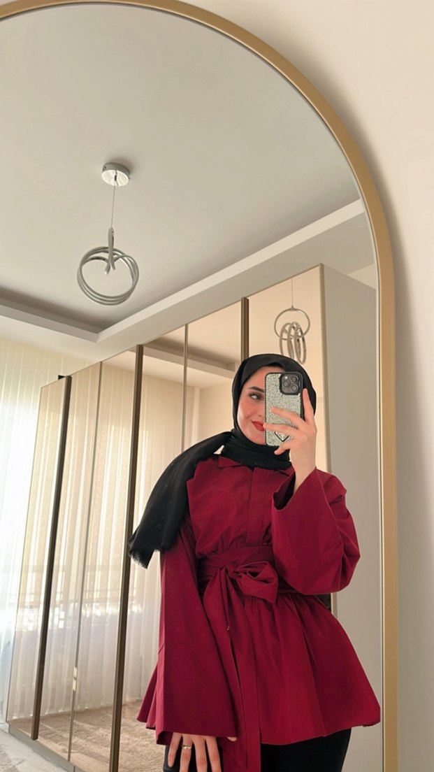 Bordo Uzun Kollu Minimalist Kadın Elbise