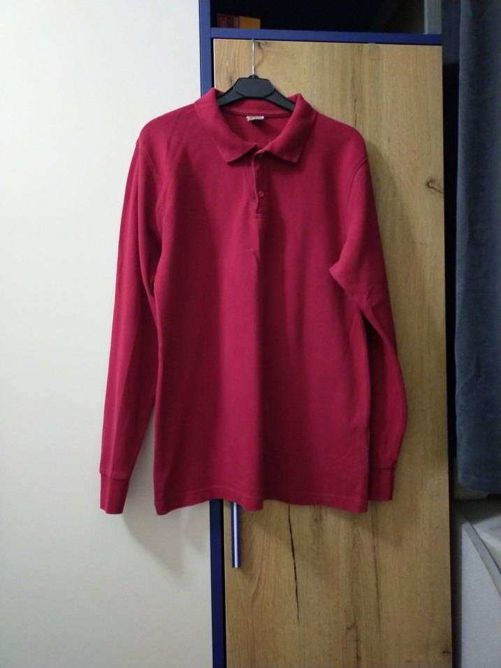 Bordo renginde, uzun kollu ve yakalı erkek polo tişört. Yumuşak ve sıcak kumaştan, bol kesim ve desen içermeyen sade tasarım. Günlük kullanıma uygun, rahat bir sokak stili sunar.