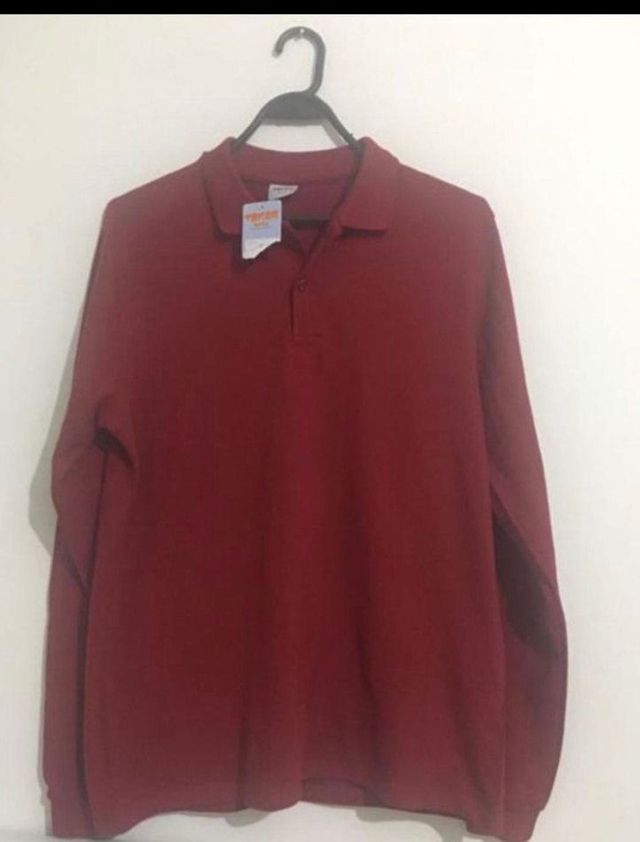 Erkek bordo renkli, uzun kollu, yakalı ve bol kesim polo yaka etiketli