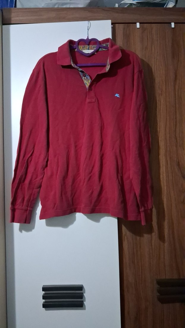 Bordo renkli, uzun kollu, düğmeli polo yaka tişört. Rahat kesimli ve yumuşak, sıcak tutan kumaştan üretilmiştir.