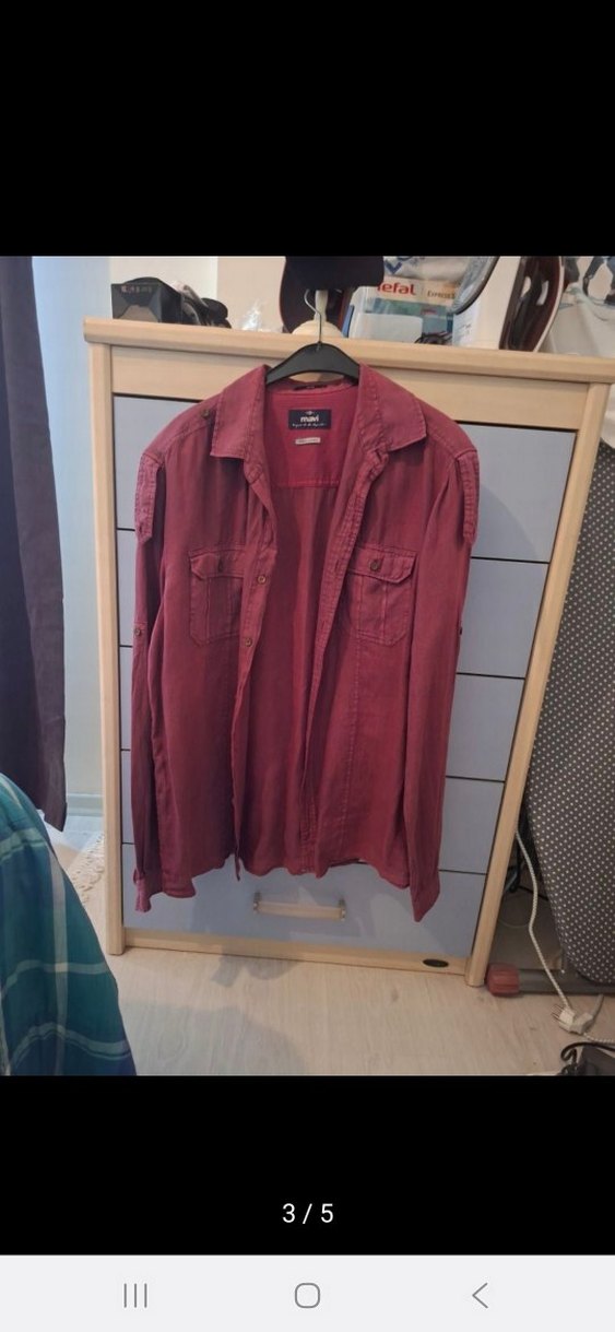 Bu erkek gömleği rahat kesime, uzun kollara ve kesik yaka yakaya sahiptir. Nefes alabilen keten kumaştan üretilmiş, düğmeli ön kapama ve iki göğüs cebi bulunur. Koyu bordo rengi günlük rahat sokak stili için uygundur. orjinal Mavi jeans l beden slim feat