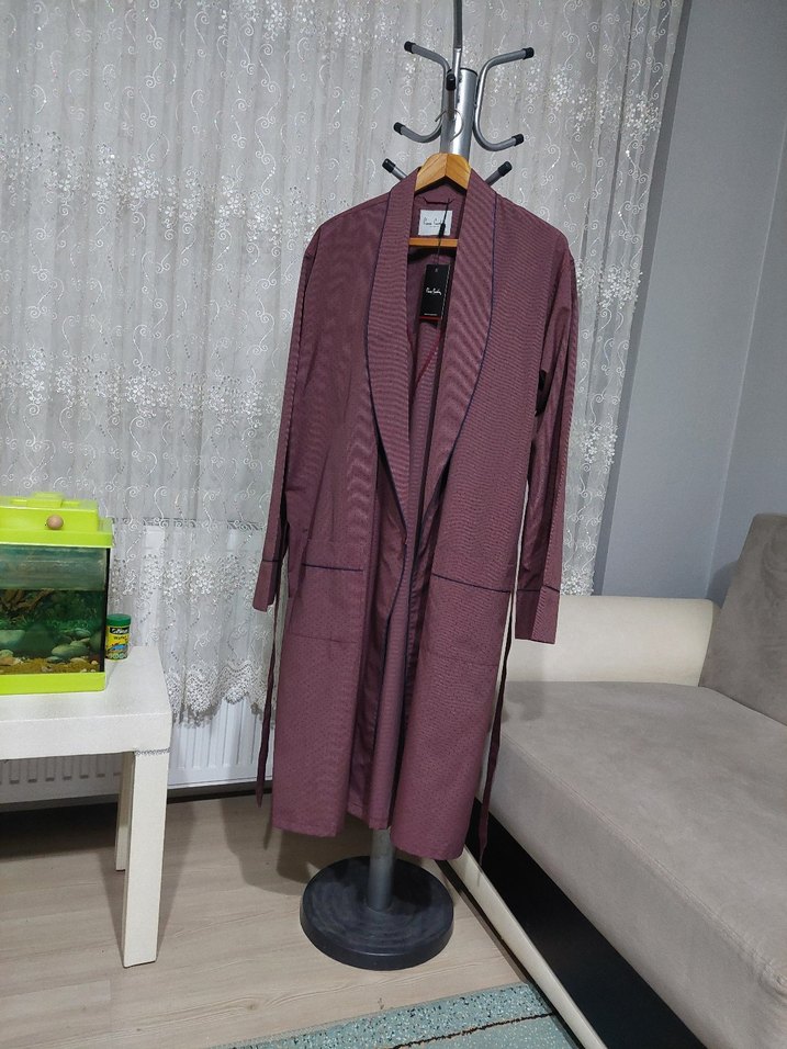 Bordo renkli, uzun kollu ve regular saten erkek ropteşembır Etiketi üzerinde olup sıfır üründür Omuzdan aşağı Boy uzunluğu 105 cm dir İki kol arası ölçüsü ise 64 cm dir Beden uymadığından satıyorum Açıklamayı dikkatli okuyup alım yapınız İade kabul etmiyorum