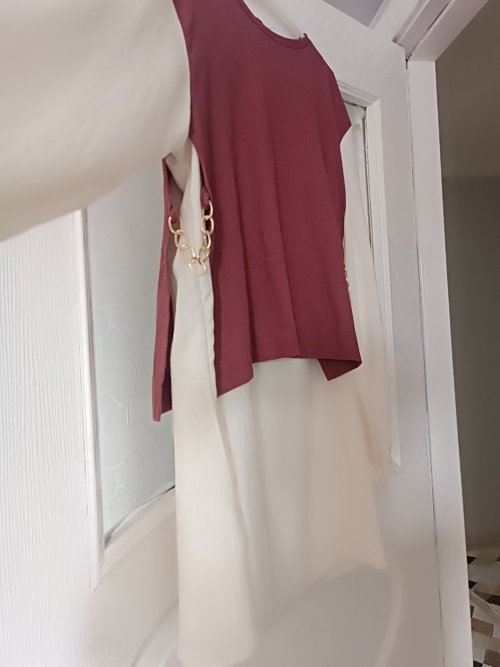 Bordo renkli, iki kat tril tril kaliteli hiç giyilmedi tarz bir tunik son fiyatıdır