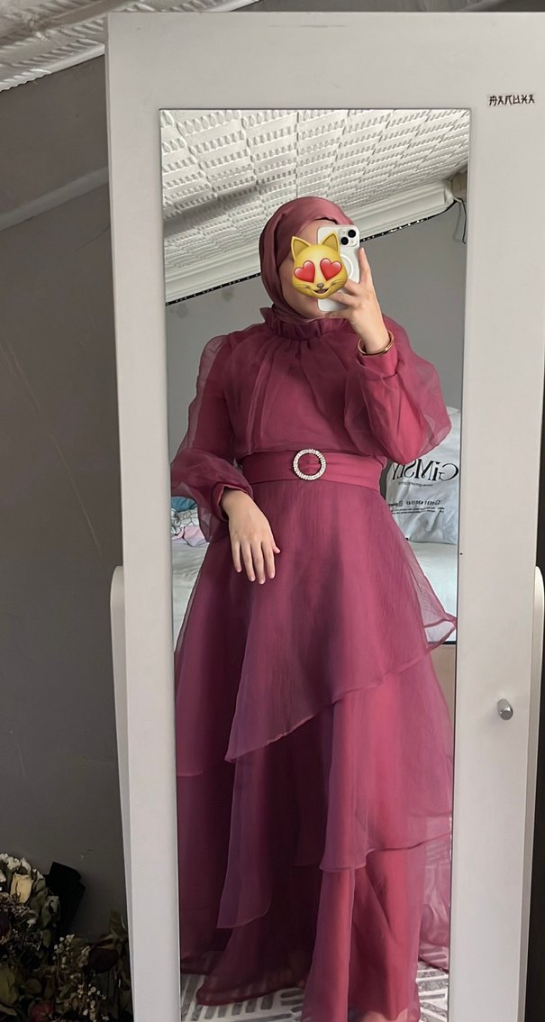 Bordo renkte, uzun kollu, salaş kesim ve drapeli katmanlara sahip, yüksek yakalı abiye elbise. Gösterişli ve mütevazı tarz için ideal. ŞAL DAHİLDİR:)