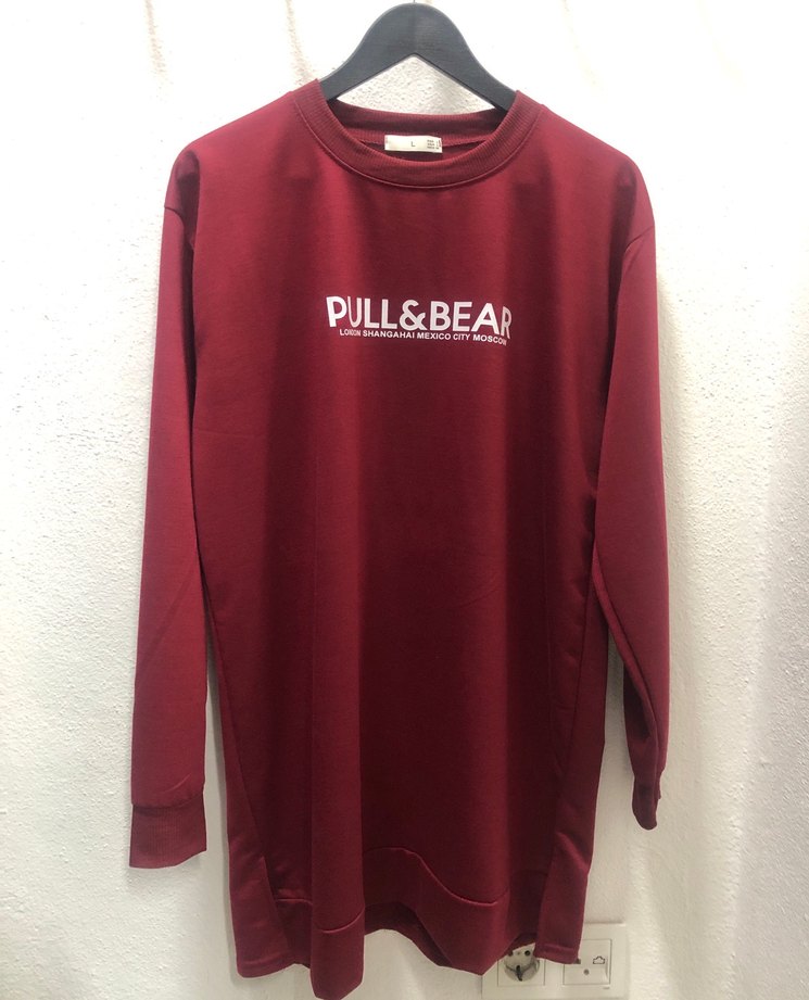 Bordo renkli, uzun kollu ve salaş kesim sweatshirt. Yumuşak ve örme dokulu kumaştan, göğüs kısmında PULL&BEAR baskısı bulunur, spor ve günlük kullanıma uygun. ♀️