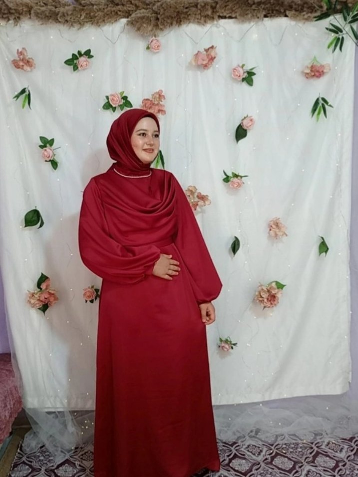 Bordo Uzun Kollu Salaş Tesettür Elbise