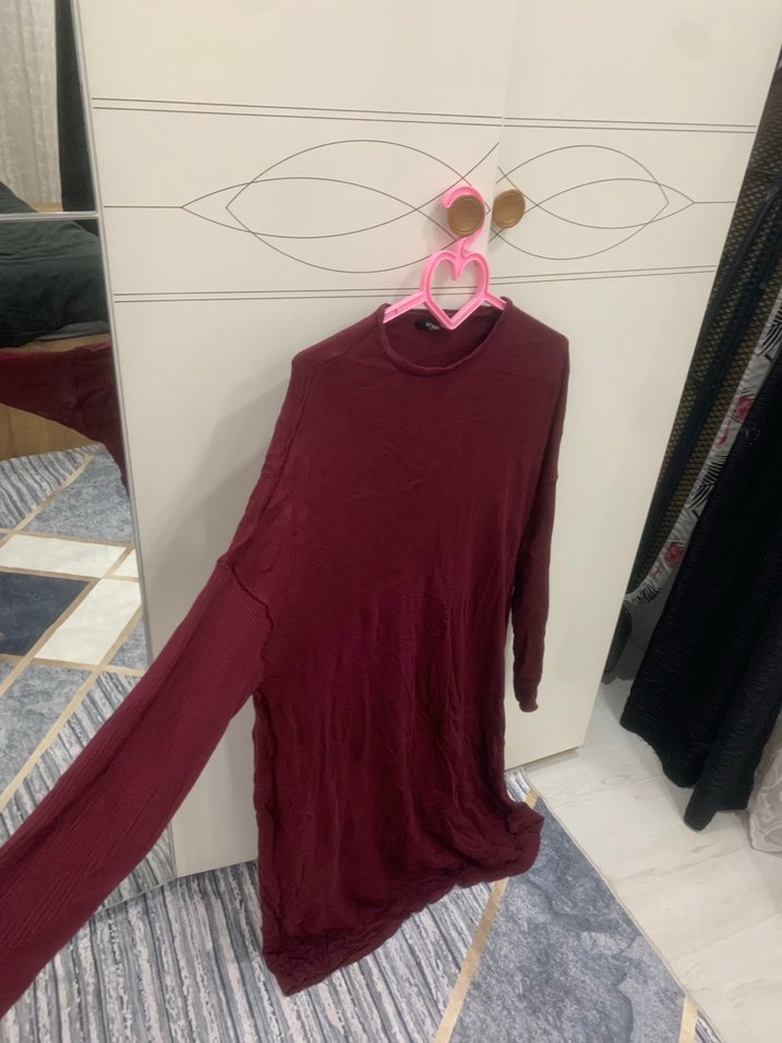 Bordo Uzun Kollu Salaş Triko