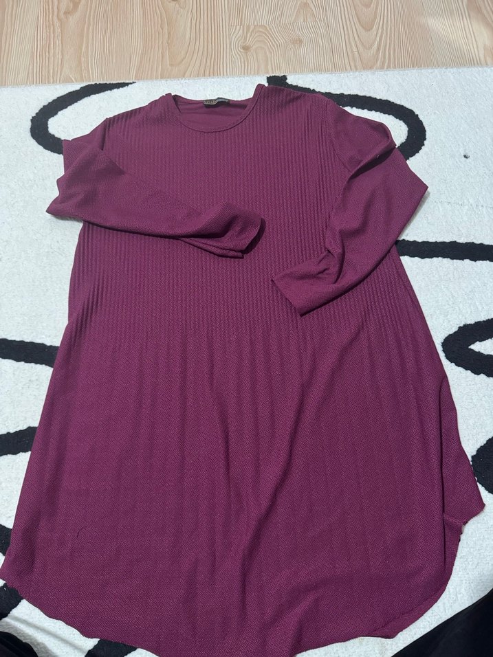 Bordo renkli, uzun kollu, salaş kesim tunik. Pliseli dokusu ve yuvarlak yaka detayıyla rahat ve günlük kullanım için uygun.38 40 bedene uygundur