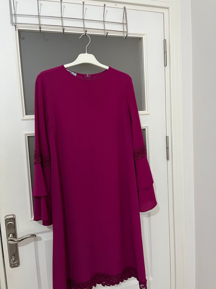 Bordo renkli, uzun kollu, salaş kesim tunik. İpek gibi dokusu, yuvarlak yaka ve drapeli kollarıyla modern klasik stil sunar. Dantel detaylar zarif bir dokunuş katıyor. ✨