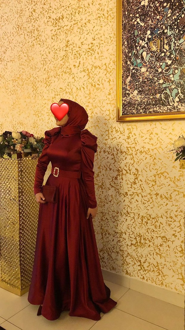 Bordo Uzun Kollu Tesettür Abiye Elbise