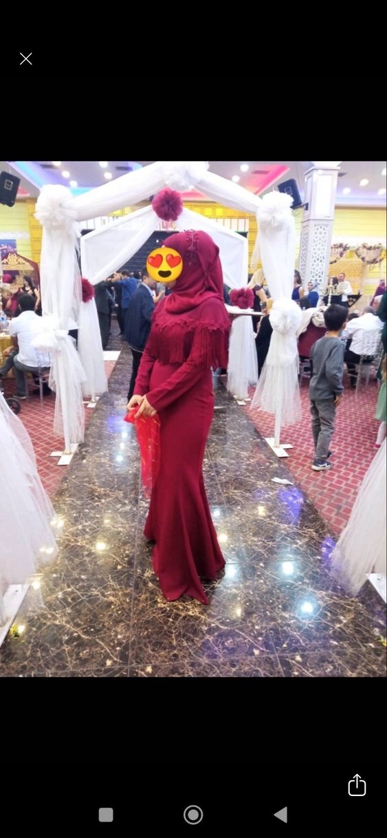 Bordo Uzun Kollu Tesettür Abiye Elbise